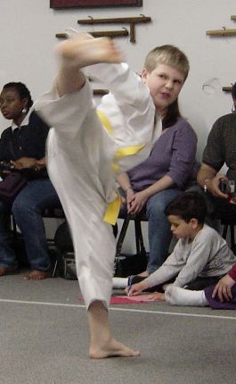 Rozenfeld throwing one mean sidekick during his kata presentation
